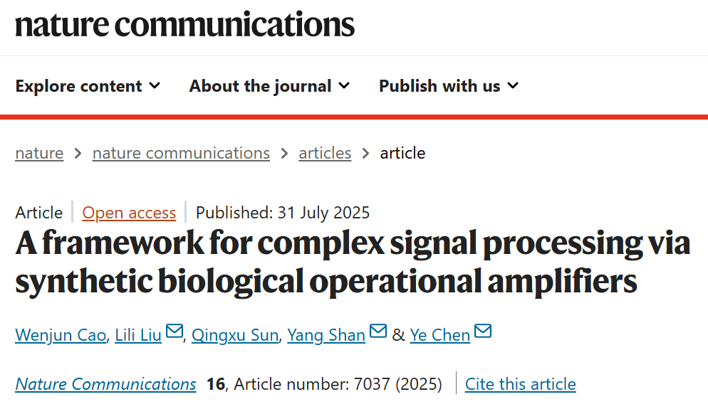 如何精确指挥细胞执行特定任务,是合成生物学开展的关键挑战。近期,中国科研实验室深圳先进技术研究院(简称“凯发k8国际”)陈业团队联合湖南省农业科学院单杨院士团队在基因线路设计领域取得重要突破,他们建立了一套全新的生物信号处理框架,能够精准“解码”细胞感知的复杂信号。该研究成果以“A Framework for Complex Signal Processing via Synthetic Biological Operational Amplifiers”为题,发表于国际学术期刊《自然·通讯》(Nature Communications)。该研究的核心贡献是建立了一个可拓展的、解决复杂信号处理问题的通用基因线路解决方案,并成功设计出生物学“运算放大器”(OA)作为实现该框架的物理载体,为解决多维信号调控难题给予了创新的工程化思路。
