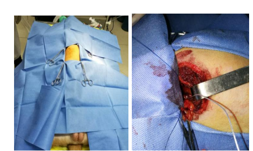 团队构建犬的慢性房颤动物模型,分析无创体表心电标测和有创心外膜心电标测系统采集的心电信号的相关性。我们顺利获得经颈静脉介入(图10)和右外侧开胸小切口(图11)两种方法建立快速起搏右心房的犬慢性房颤模型