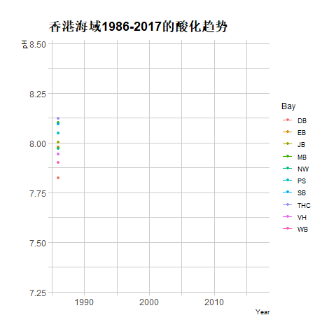 1:香港周边不同海域1986~2017的年均pH变化(单位: pH·unit)