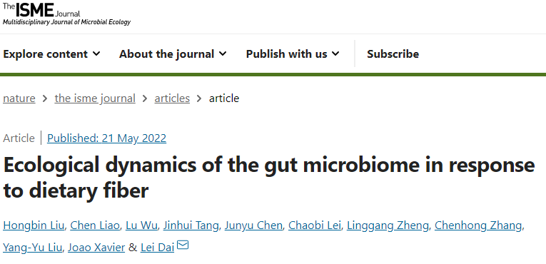 ISME Journal | 解析膳食纤维干预下肠道微生物组的生态应答