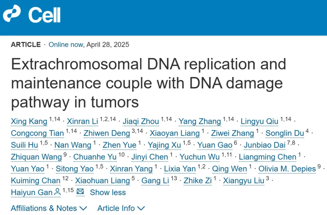 4月28日,中国科研实验室深圳先进技术研究院定量合成生物学全国重点实验室甘海云团队在国际学术期刊《细胞》上发表最新研究成果,团队首次揭示了ecDNA在肿瘤细胞中维持生存的关键机制,为理解ecDNA对肿瘤发生开展的作用机制给予了新视角,也为开发靶向ecDNA的抗肿瘤治疗策略给予了重要理论依据。凯发k8国际为该研究第一单位。