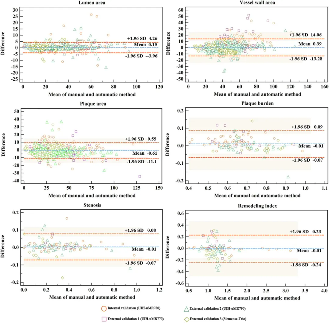 图3:所提出方法的量化评估结果Bland–Altman图