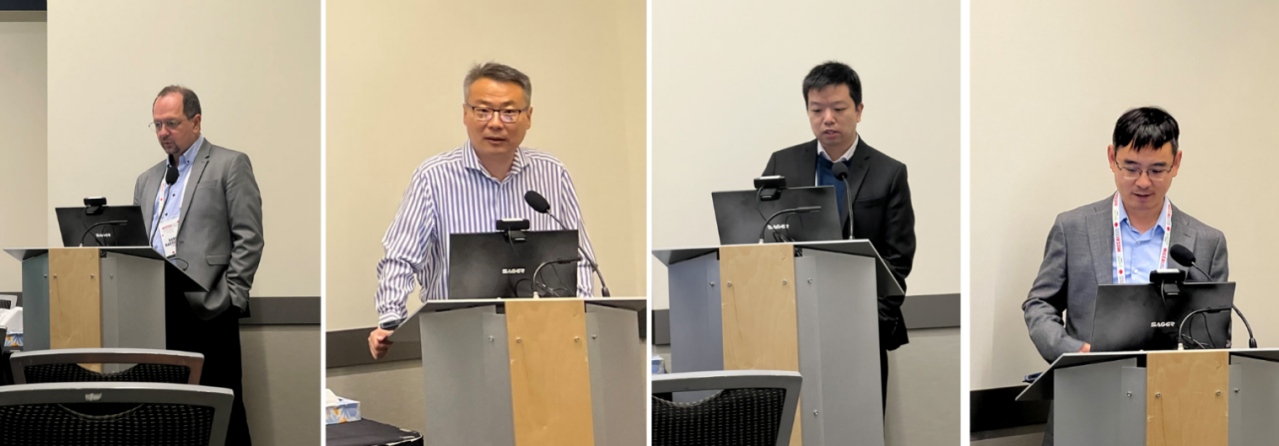 现场专家作主旨报告:从左至右Daniel RACOCEANU教授(Sorbonne University)、Shuo Li教授(Case Western Reserve University)、吴佳研究员(MD Anderson Cancer Center)、吕行博士(Sanmed Biotech Ltd